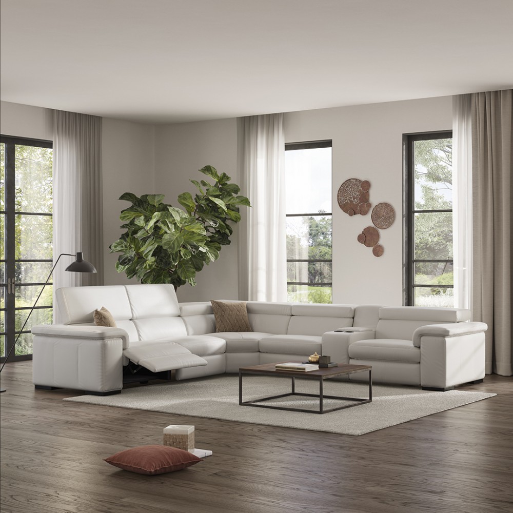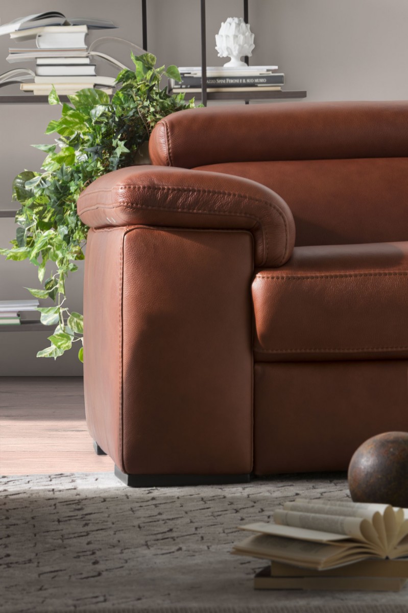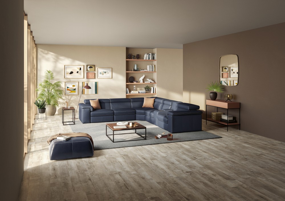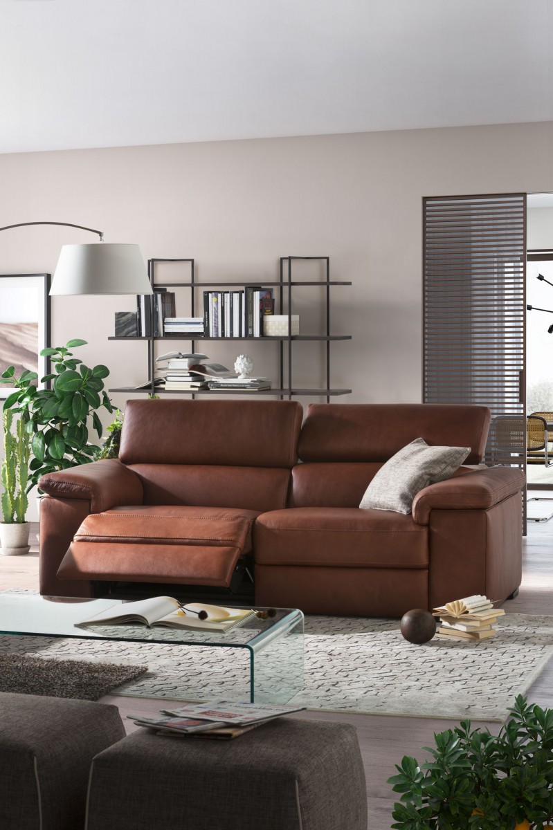 Das Sofa Solare wurde im Hinblick auf absoluten Komfort entworfen. Sowohl die Kopfstütze als auch die Fußstütze lassen sich dank Natuzzis patentiertem Motion-System mühelos öffnen.