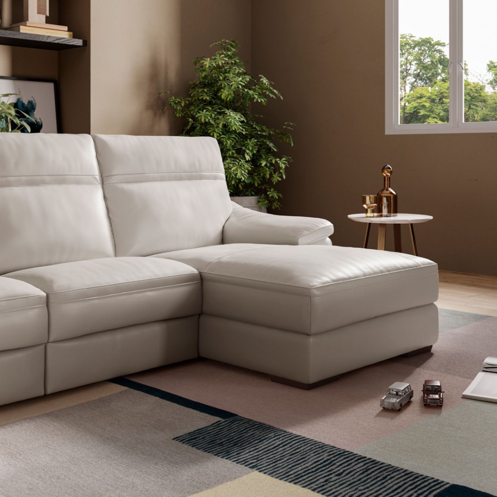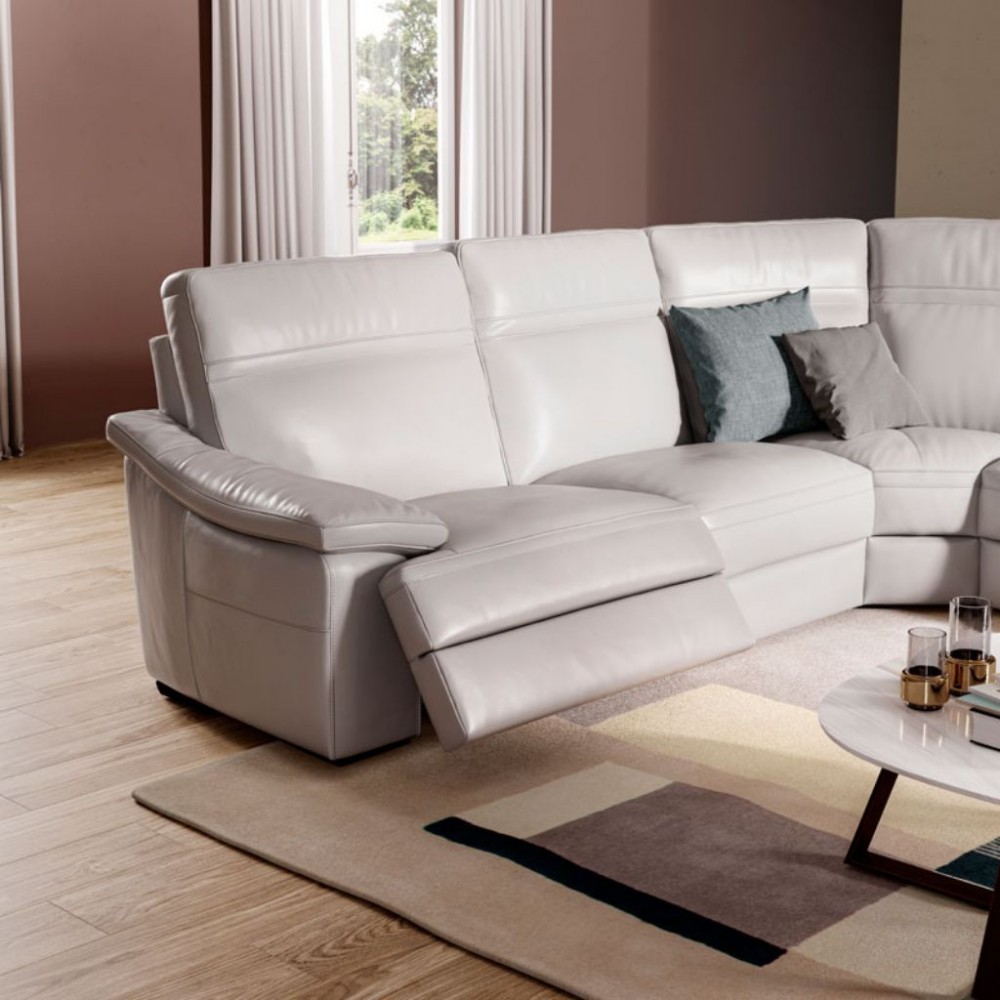 Breiter Sitz, optional drei elektrisch verstellbare Liegesitze und extra weiche Armlehnen, die gleichzeitig als Kissen dienen. Sie fügen sich zu einem harmonischen Ganzen zusammen, um ein Sofa mit dem Komfort zu bieten, den wir brauchen, und dem Aussehen, das wir wollen. Dank der unabhängigen Einstellung von Kopfstütze, Fußstütze und Lendenbereich können Sie auf unserem Pazienza-Sofa bequem sitzen.