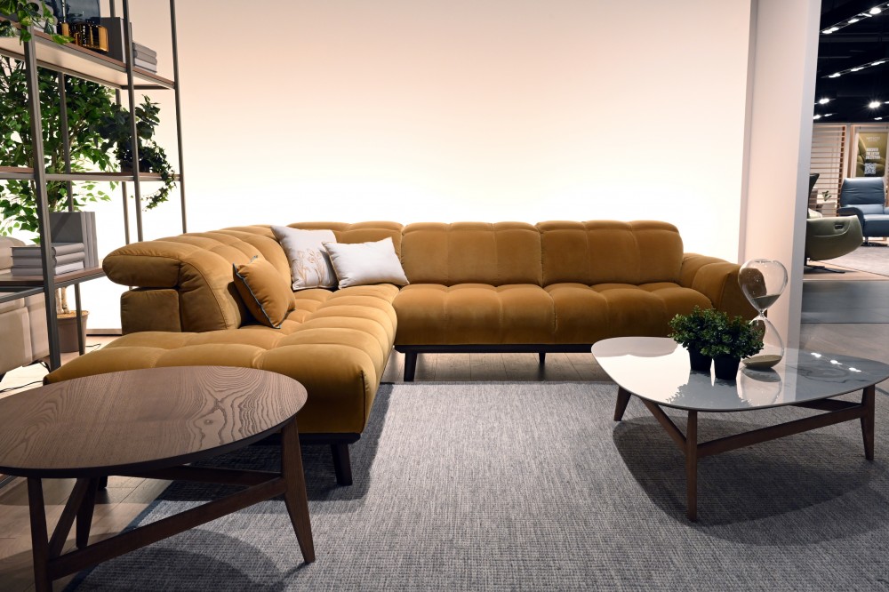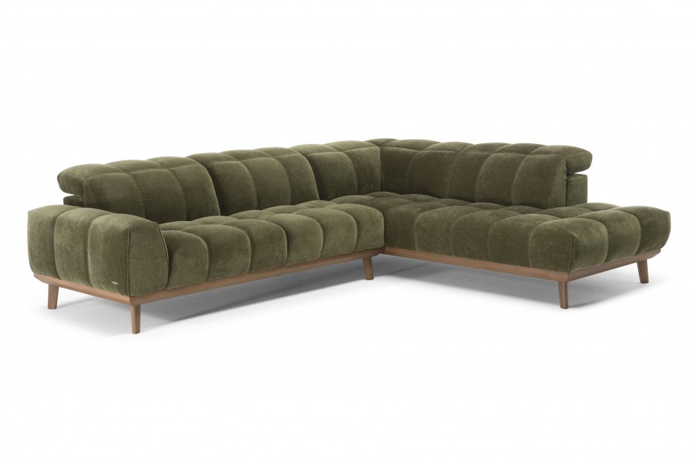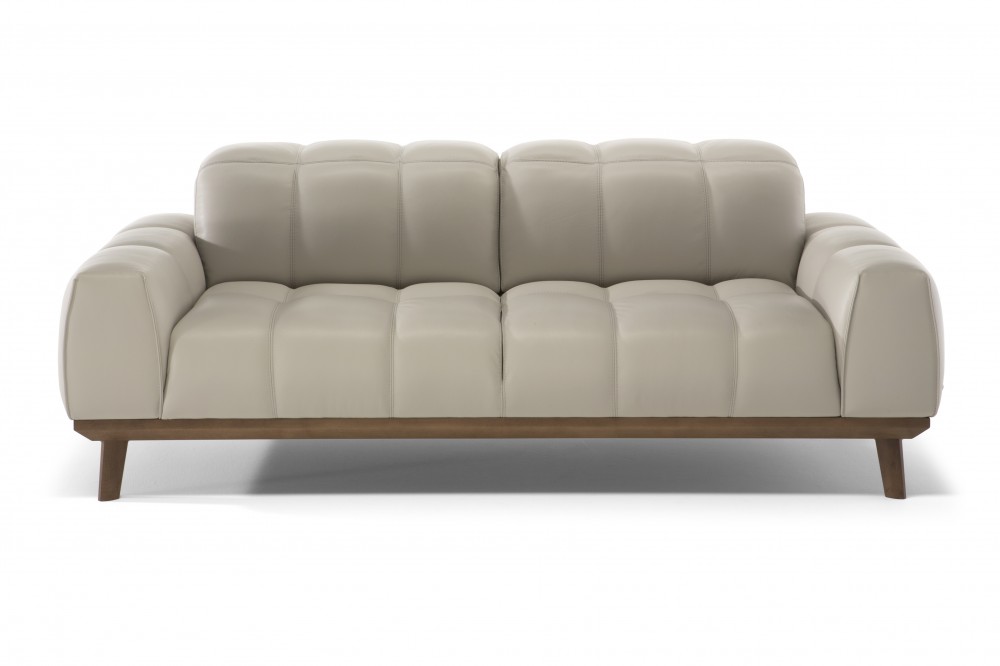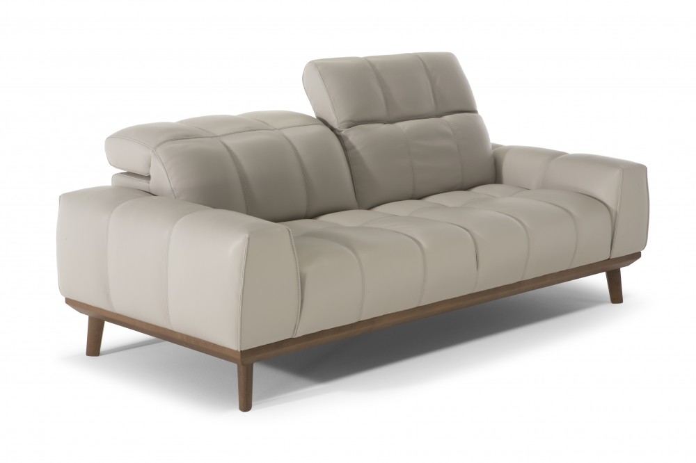Alles im Autentico-Sofa ist gedämpft, um sein Hauptmerkmal zu betonen - den höchsten Komfort. Es hat einen großen, weichen Sitz mit einer gesteppten Rückenlehne, die mit einer manuell verstellbaren Kopfstütze ausgestattet ist. Das Sofa steht auf einem Holzsockel, der von eleganten Beinen getragen wird, ebenfalls aus Holz.