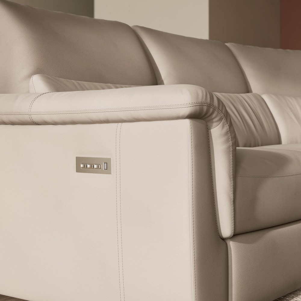 Das Amorevole Sofa hat ein freies Design und freundliche Formen. Dank der optionalen Cubicomfort? Triple-Motion-Technologie verfügt jedes Element über drei unabhängige, elektrisch gesteuerte Bewegungsmechanismen, mit denen Sie die Position von Sitzfläche, Rückenlehne, Fußstütze und Kopfstütze Ihren Vorlieben anpassen können.
