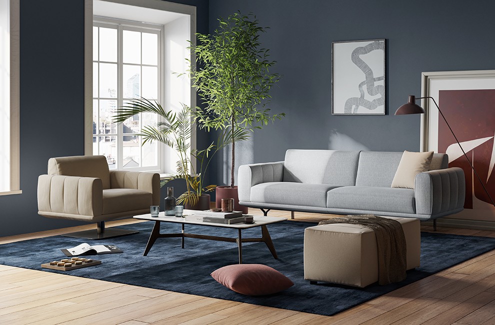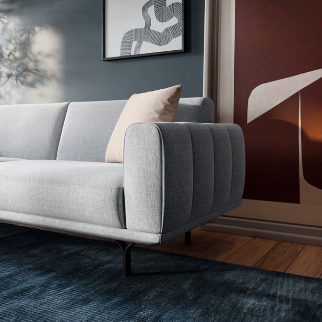 Das Dalt Sofa zeichnet sich durch ein elegantes, schlichtes Design aus. Ungewöhnliche gesteppte Armlehnen verleihen den Möbeln ein raffiniertes Detail und verleihen dem Sofa Klasse und Chic.