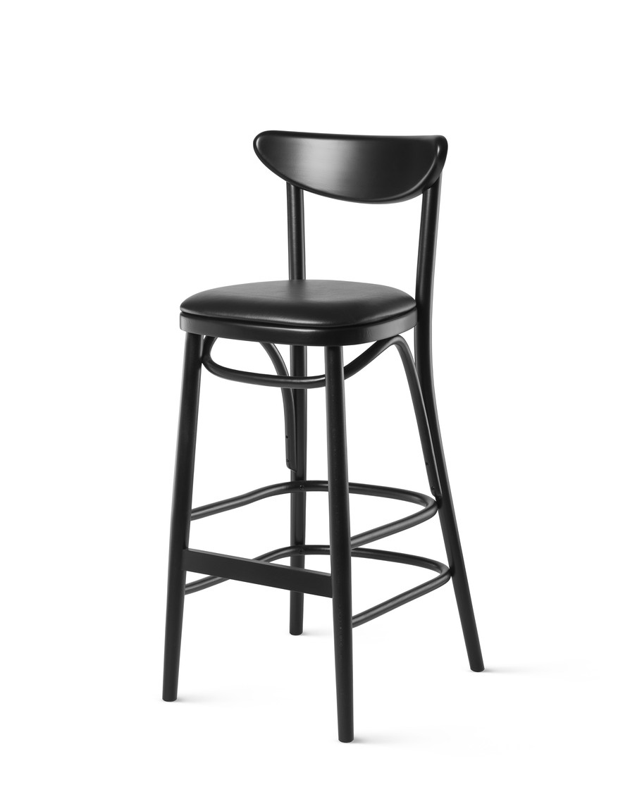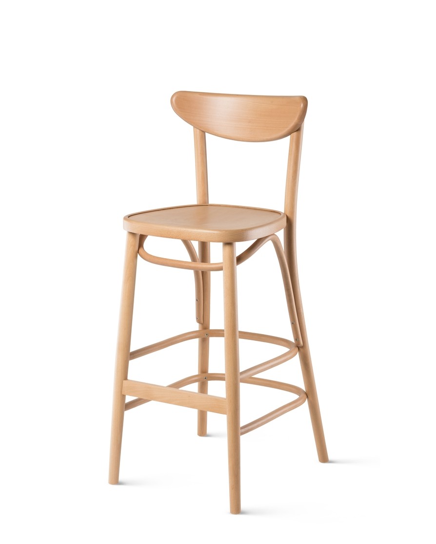 Der Barstuhl BST-1260 wird aufgrund der Form der Sperrholzrückenlehne gemeinhin als Banane bezeichnet. Das Design des Stuhls basiert auf der Technologie des traditionellen manuellen Biegens von Buchenholz.
