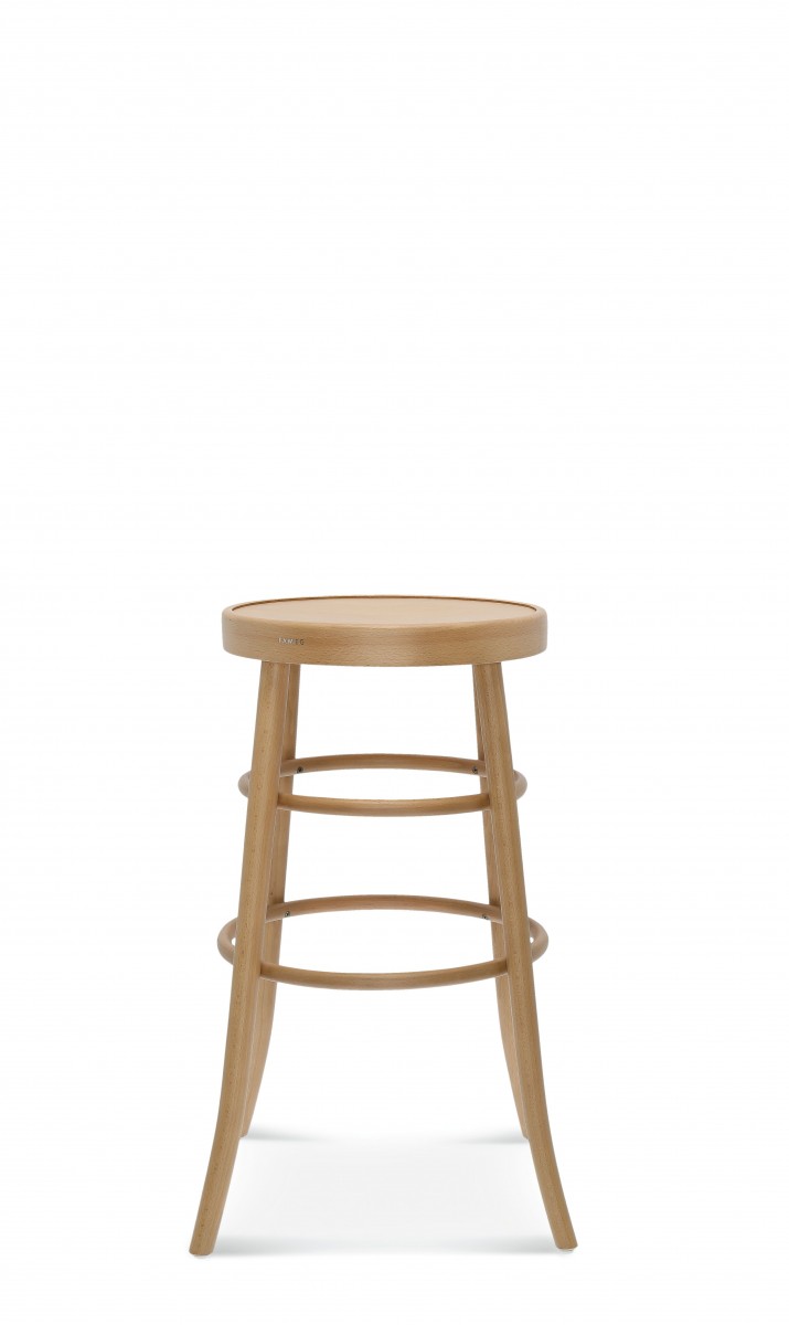 BST-302 ist ein hoher, sehr klassischer Barhocker mit fein profilierten Beinen und zwei runden, gebogenen Beingelenken in traditioneller Technik.
