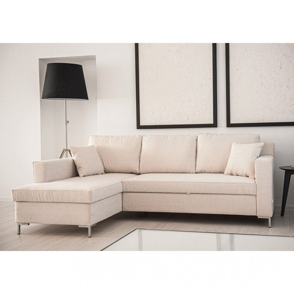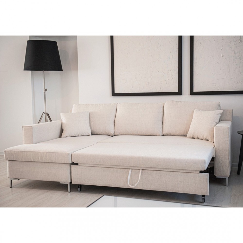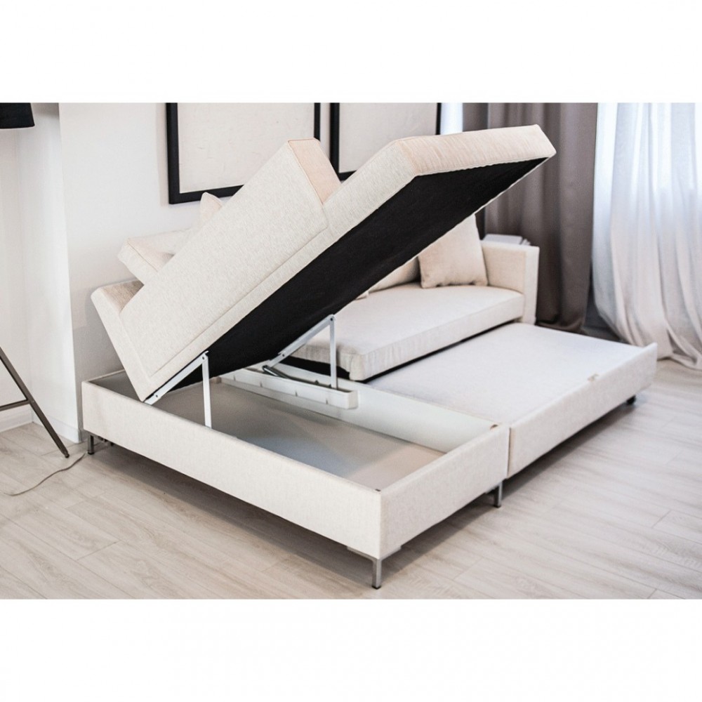 Tagsüber ein stilvolles Sofa im Wohnzimmer, aber abends verwandelt es sich in ein bequemes Bett, d.h. unser funktionellstes Modell - Ilona UP mit einem modernen Metallbein.