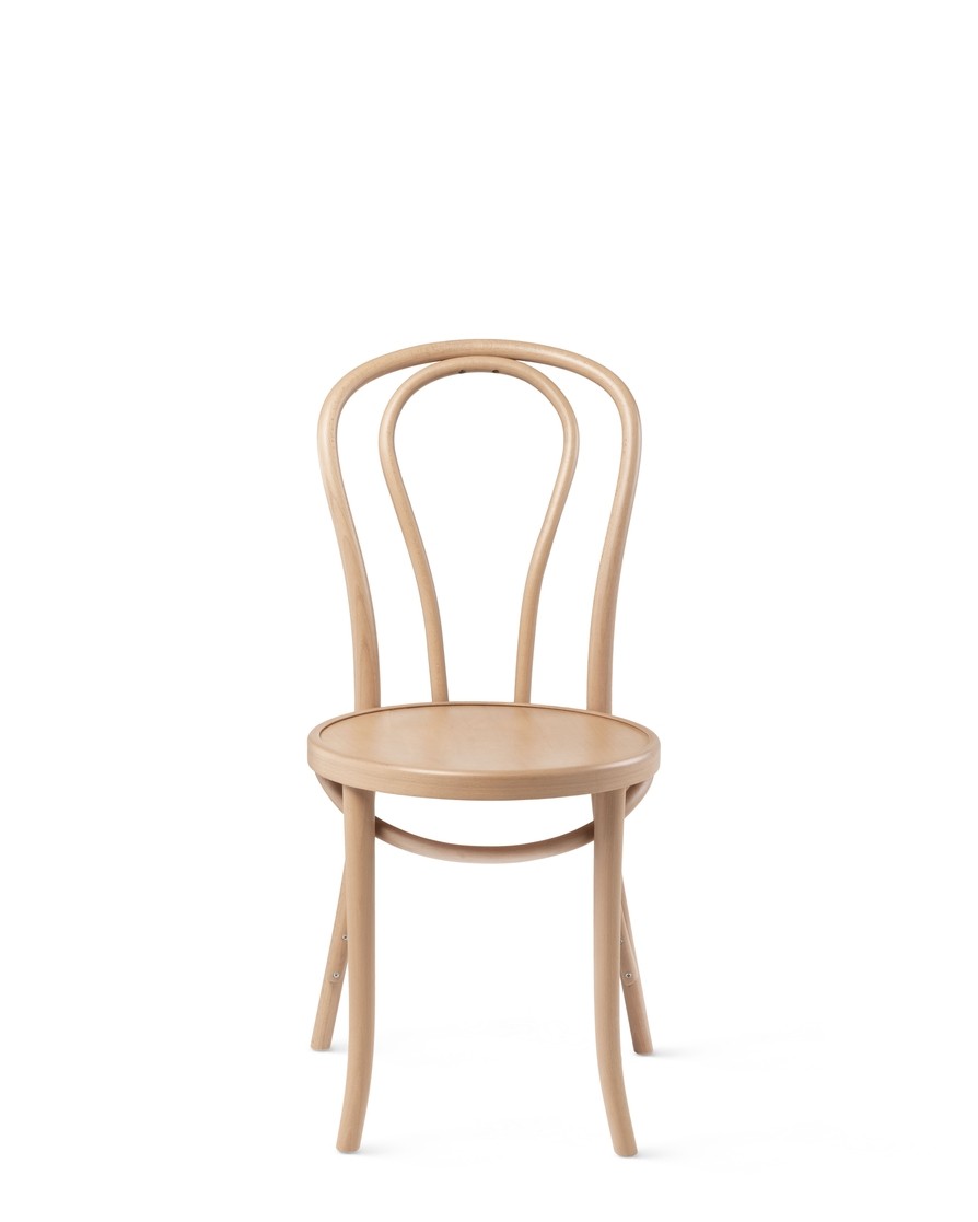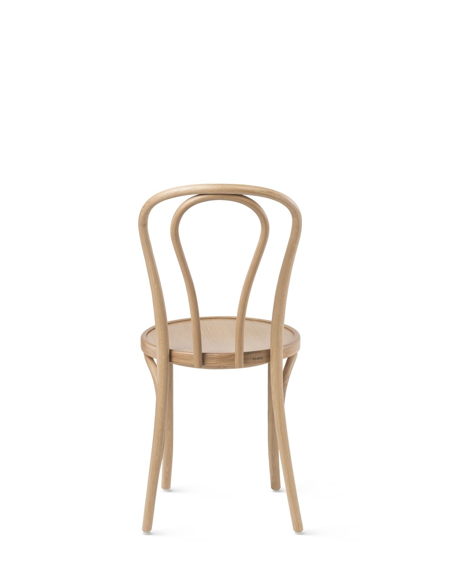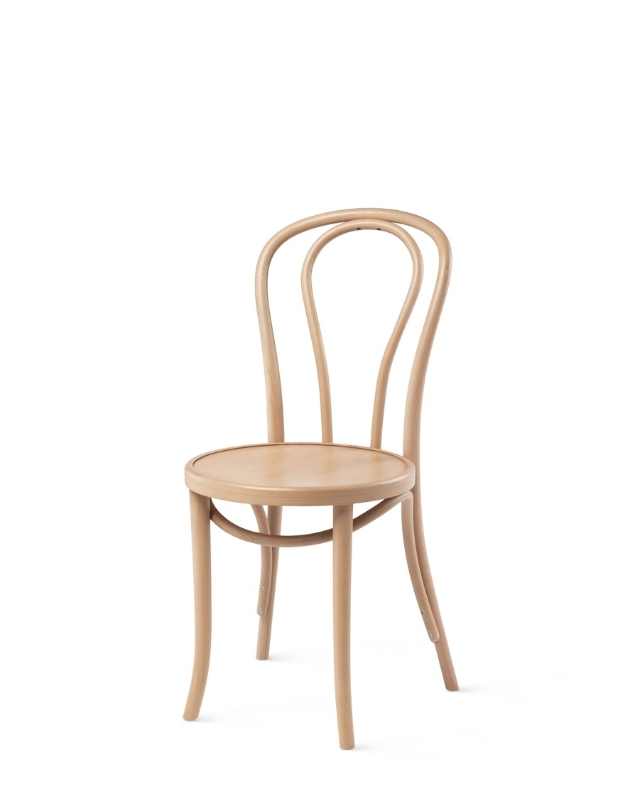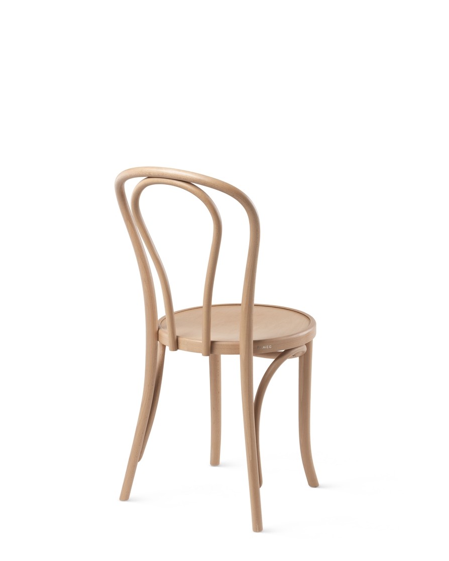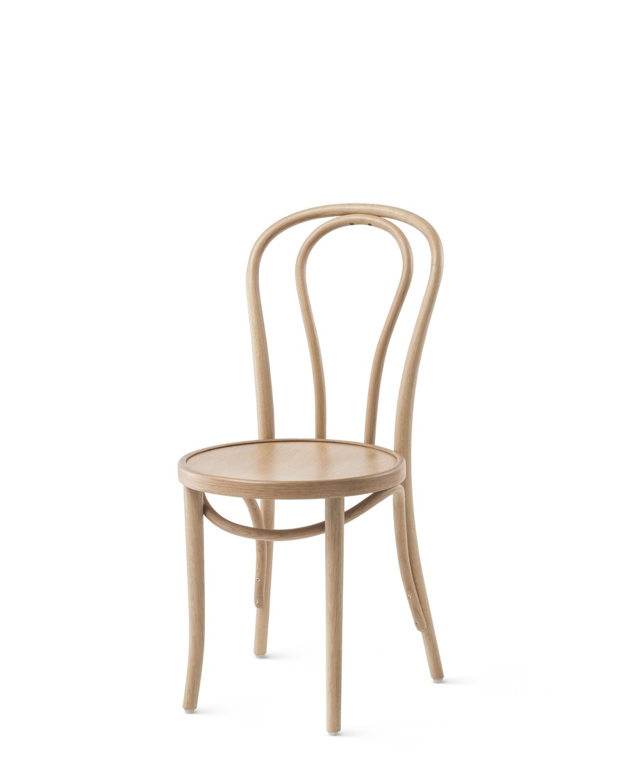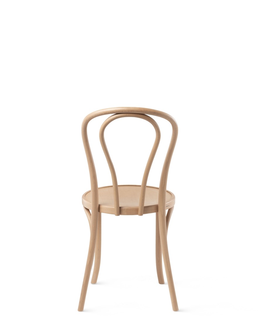 Der Stuhl Nr. 18 entstand 1876 und ist neben dem Modell Nr. 14 das zweite überaus erfolgreiche Weltmodell von Michael Thonet. Von seinem berühmten Verwandten unterscheidet er sich lediglich durch ein Detail an der Rückenlehne. Der Stuhl wird seit Jahren für seine Qualität und Langlebigkeit geschätzt, die auf das traditionelle Handbiegen zurückzuführen ist.
