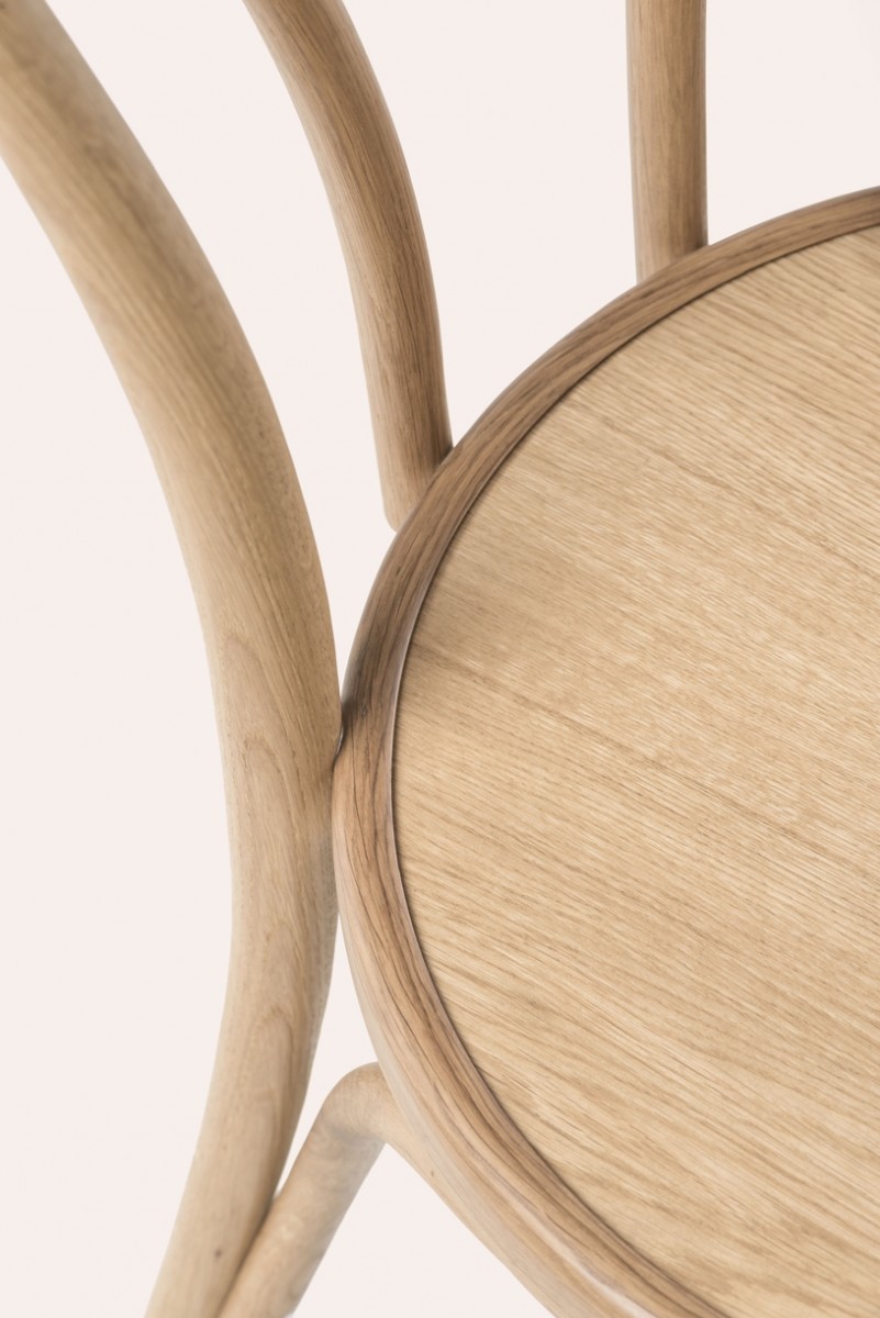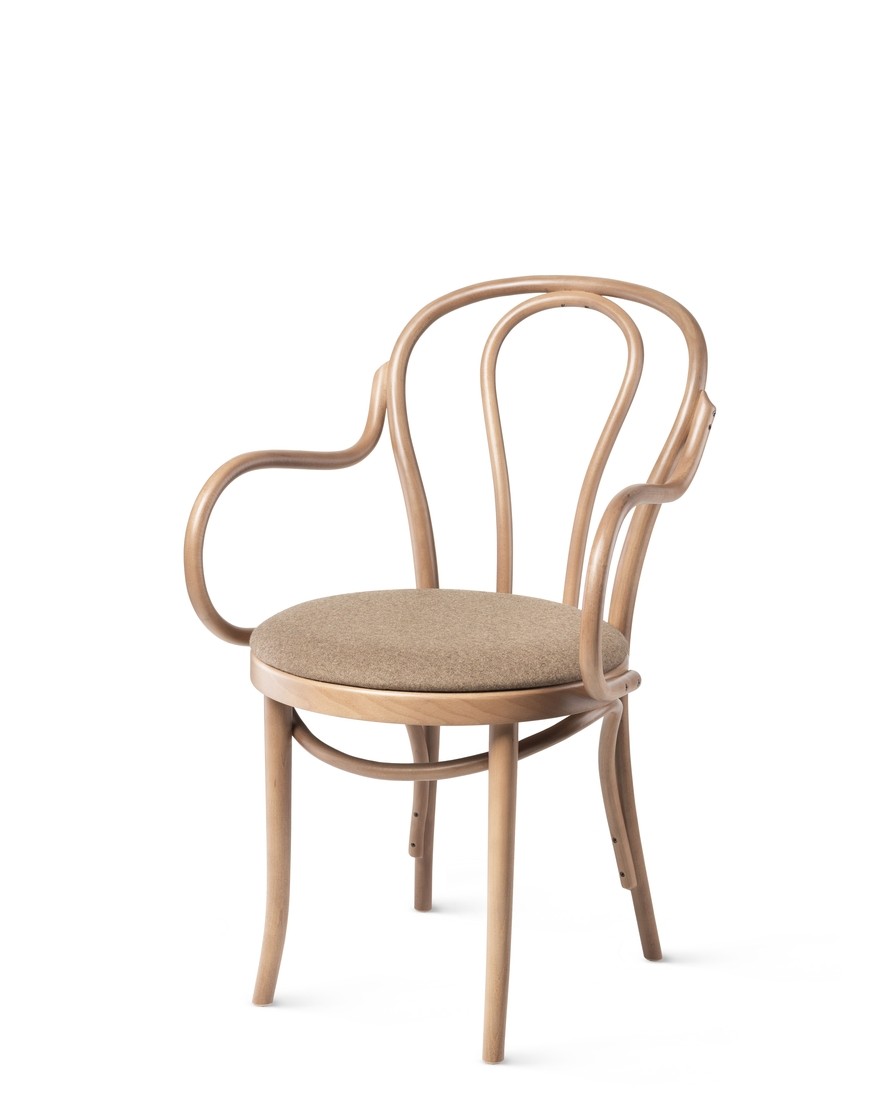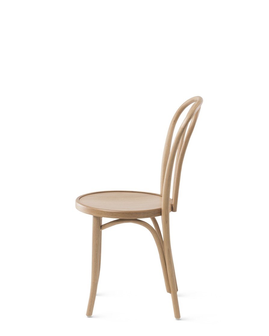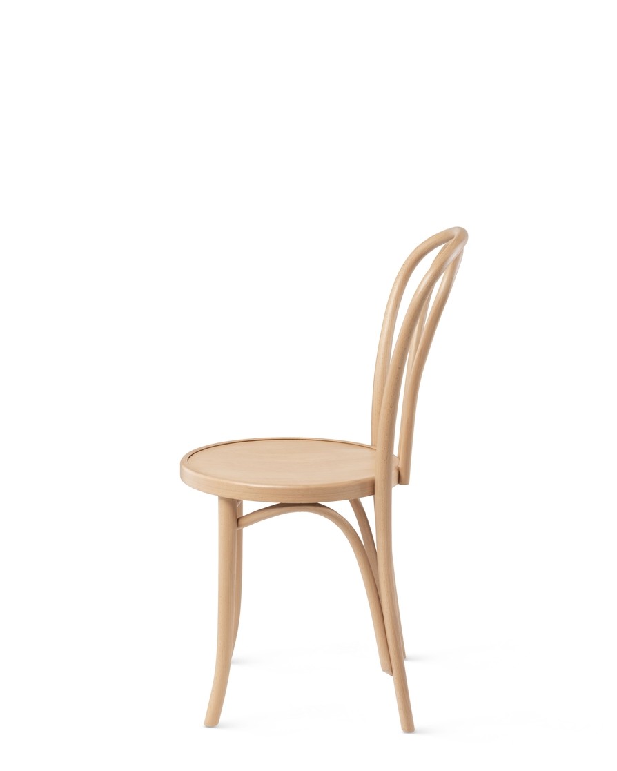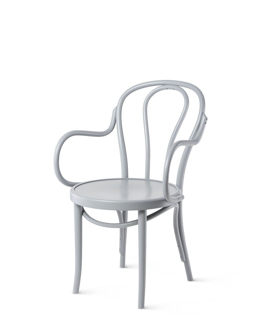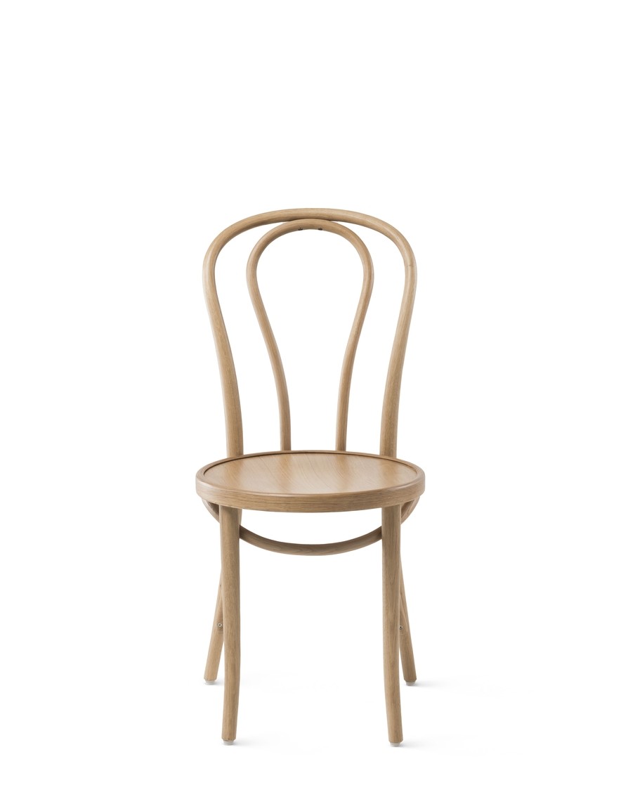 Der Stuhl Nr. 18 entstand 1876 und ist neben dem Modell Nr. 14 das zweite überaus erfolgreiche Weltmodell von Michael Thonet. Von seinem berühmten Verwandten unterscheidet er sich lediglich durch ein Detail an der Rückenlehne. Der Stuhl wird seit Jahren für seine Qualität und Langlebigkeit geschätzt, die auf das traditionelle Handbiegen zurückzuführen ist.