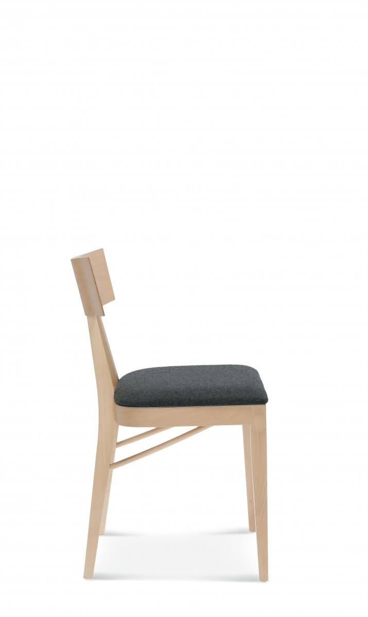 Der Akka-Stuhl ist eine vom japanischen Minimalismus inspirierte Form, die sich durch eine fein profilierte Rückenlehne aus Sperrholz und asymmetrische Beine auszeichnet.